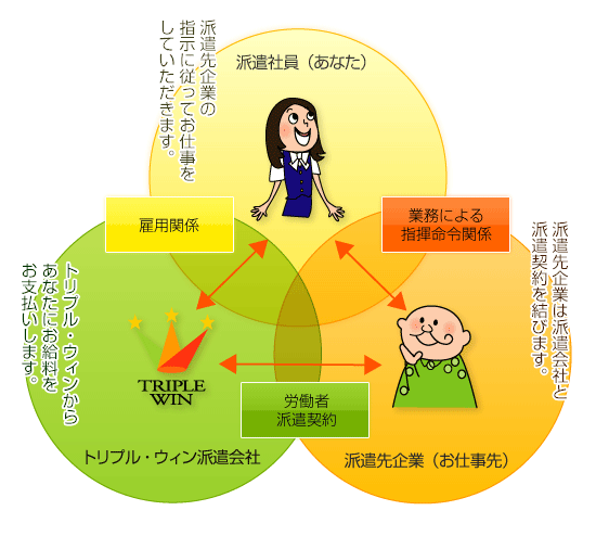 と、色々な不安がおありのことと思います。まずは、人材派遣の仕組みをご紹介します。