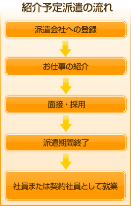 派遣期間中(最長約6ヶ月)に企業(派遣先)の仕事内容・職場環境等を一度経験し、その後企業(派遣先)とあなた(派遣社員)の雇用関係が成立となります。
